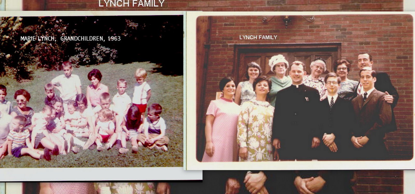 Included: Jim Lynch obituary; Nan & Bill's wedding; Aunts Kit, Winnie and Margaret; Cousin Steve Lynch (a priest); Gramma Lynch and husband Silas "Doc" Lynch; Cousin Ralph Nappi